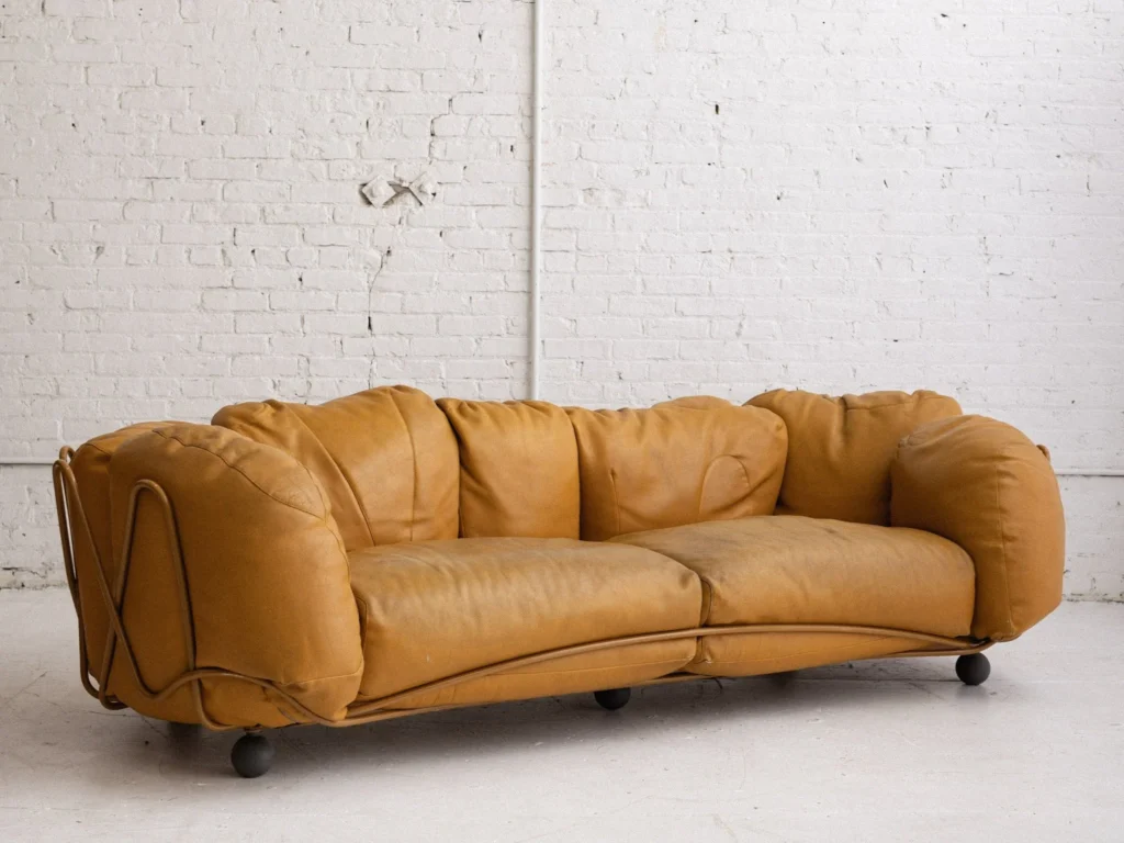 Baxter treats leather differently than any other brand on this list, often experimenting with unconventional textures, distressed finishes, and unique dyes. While other brands strive for perfection, Baxter celebrates the “perfect imperfection” of natural hides, offering nubuck and suede-like finishes that feel like a second skin. Their designs are often bohemian and oversized, featuring exposed seams and raw edges. For a homeowner looking to move away from the “showroom look” toward something more curated and artistic, Baxter is the undisputed leader in leather experimentation.