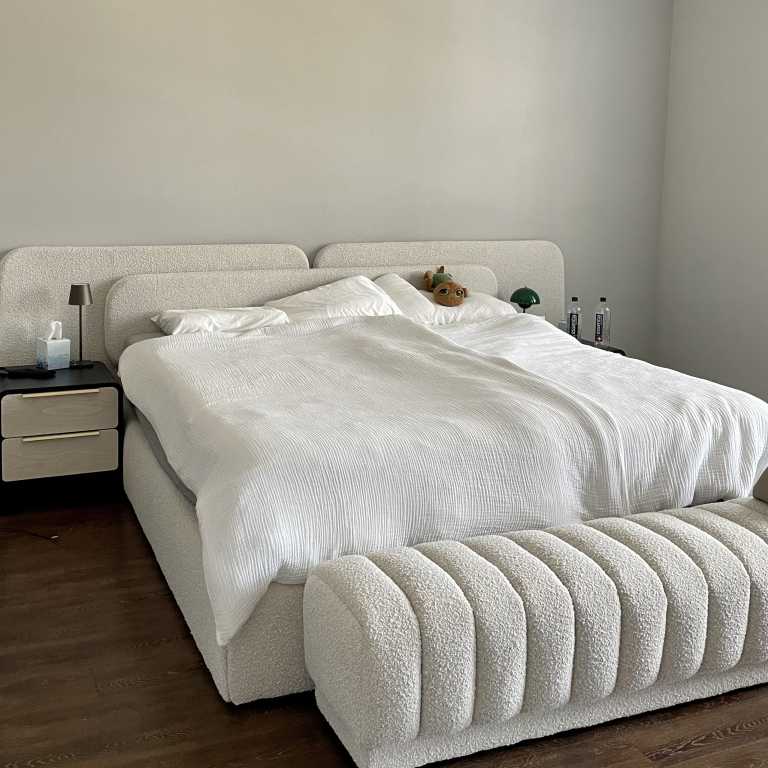 سرير جميل! أحب كم هو كبير ومبني بشكل جيد. الخامة جميلة ويعجبني أنه يمكنني وضع أي لون مع هذا السرير. أحب تغيير الأشياء مثل الفراش والوسائد!