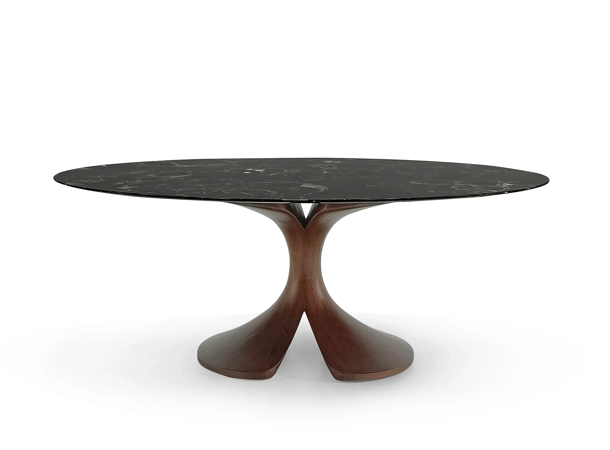 - Sculpted walnut base with organic fluid design