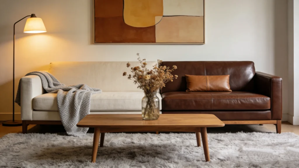 The Leather Statement: Leather exudes sophistication and luxury. It is the hallmark of Mid-Century Modern, Industrial, and Traditional styles (think of the classic Chesterfield). While color options have expanded beyond brown and black, leather still carries a more "formal" or "sleek" aesthetic.